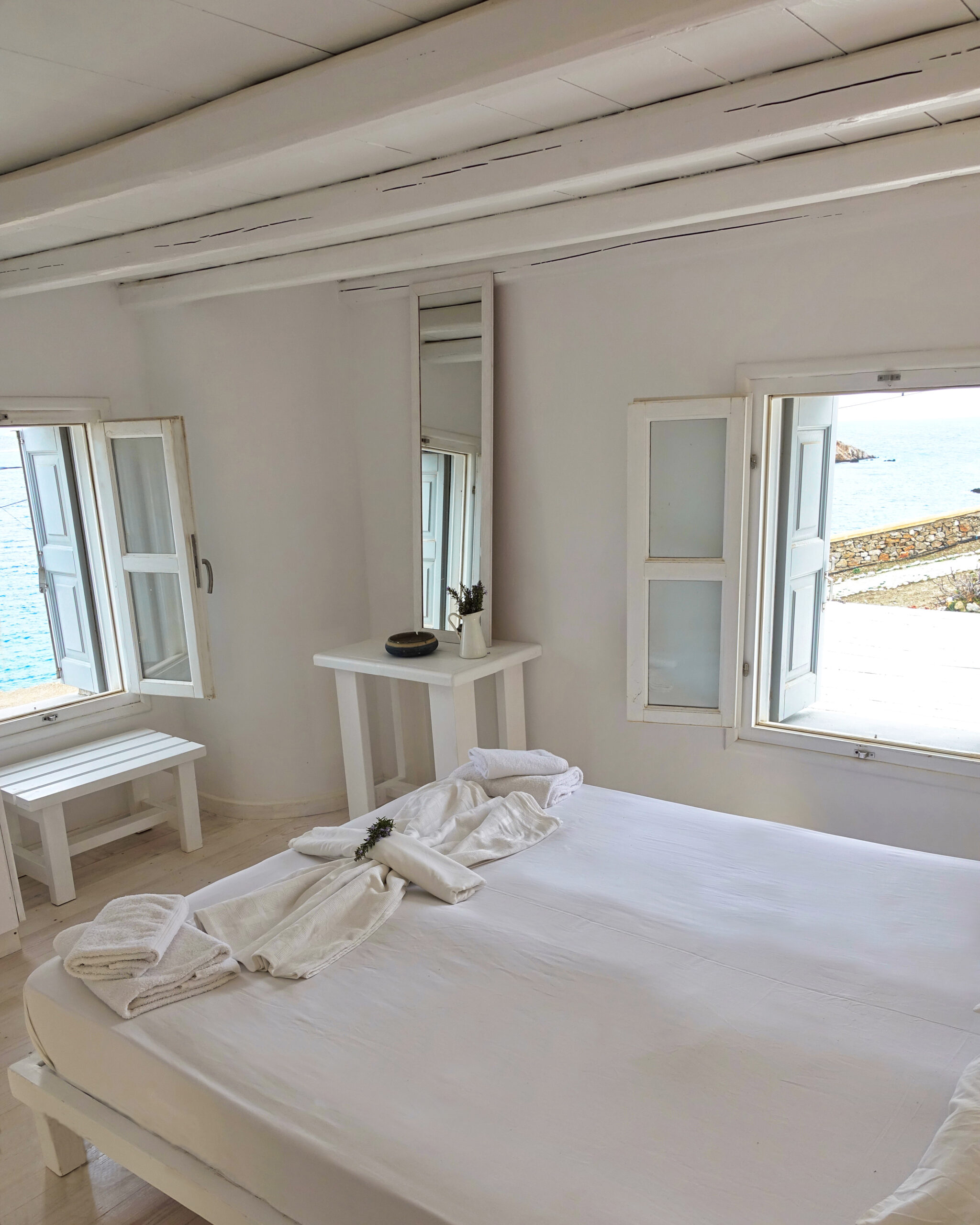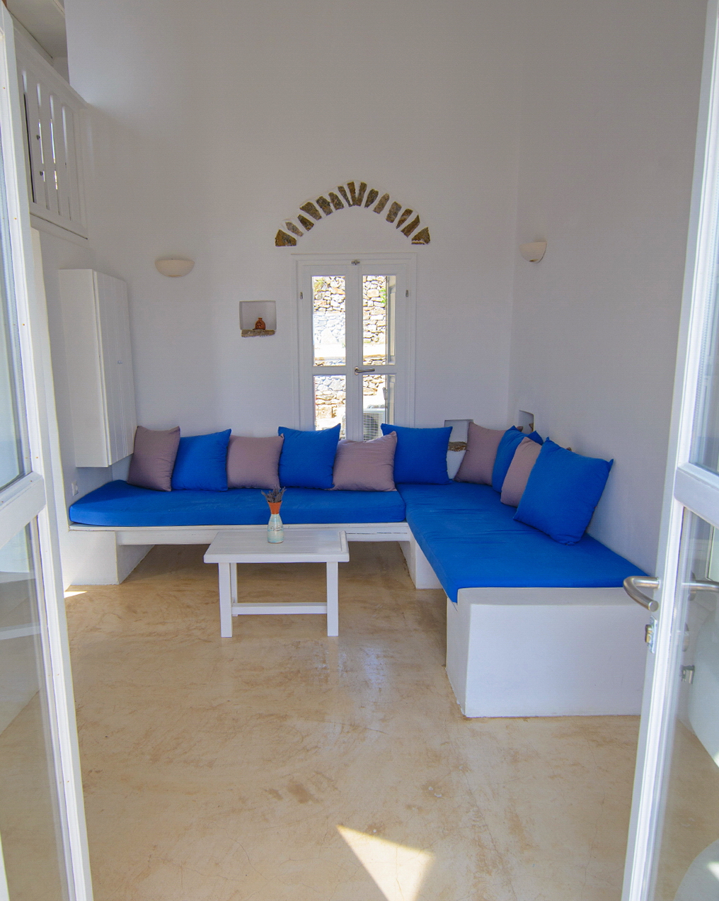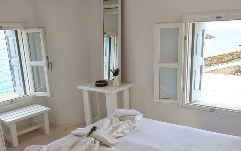 With private outdoor spaces, sea views, and direct access to both the beach and the common pool, it offers a calm and authentic Cycladic experience throughout the year.