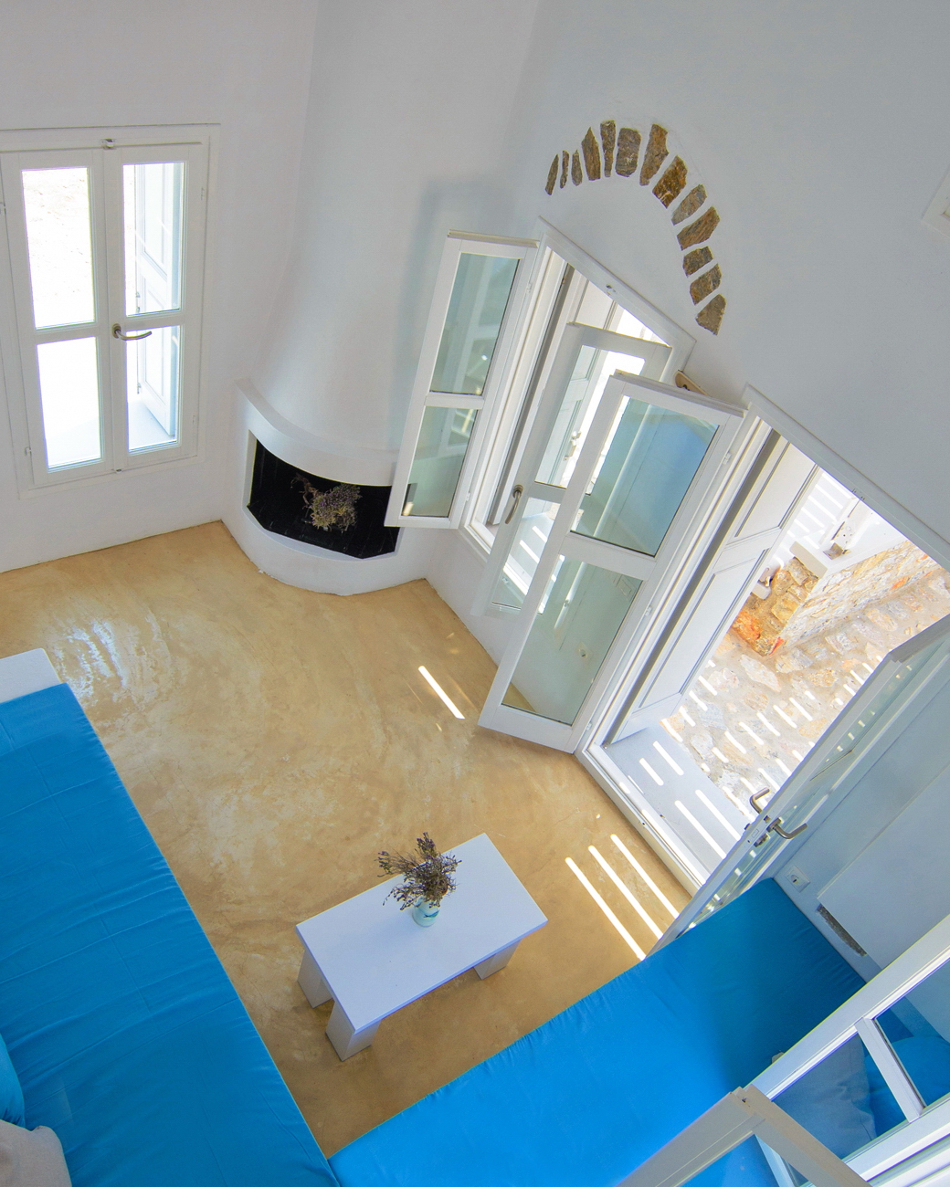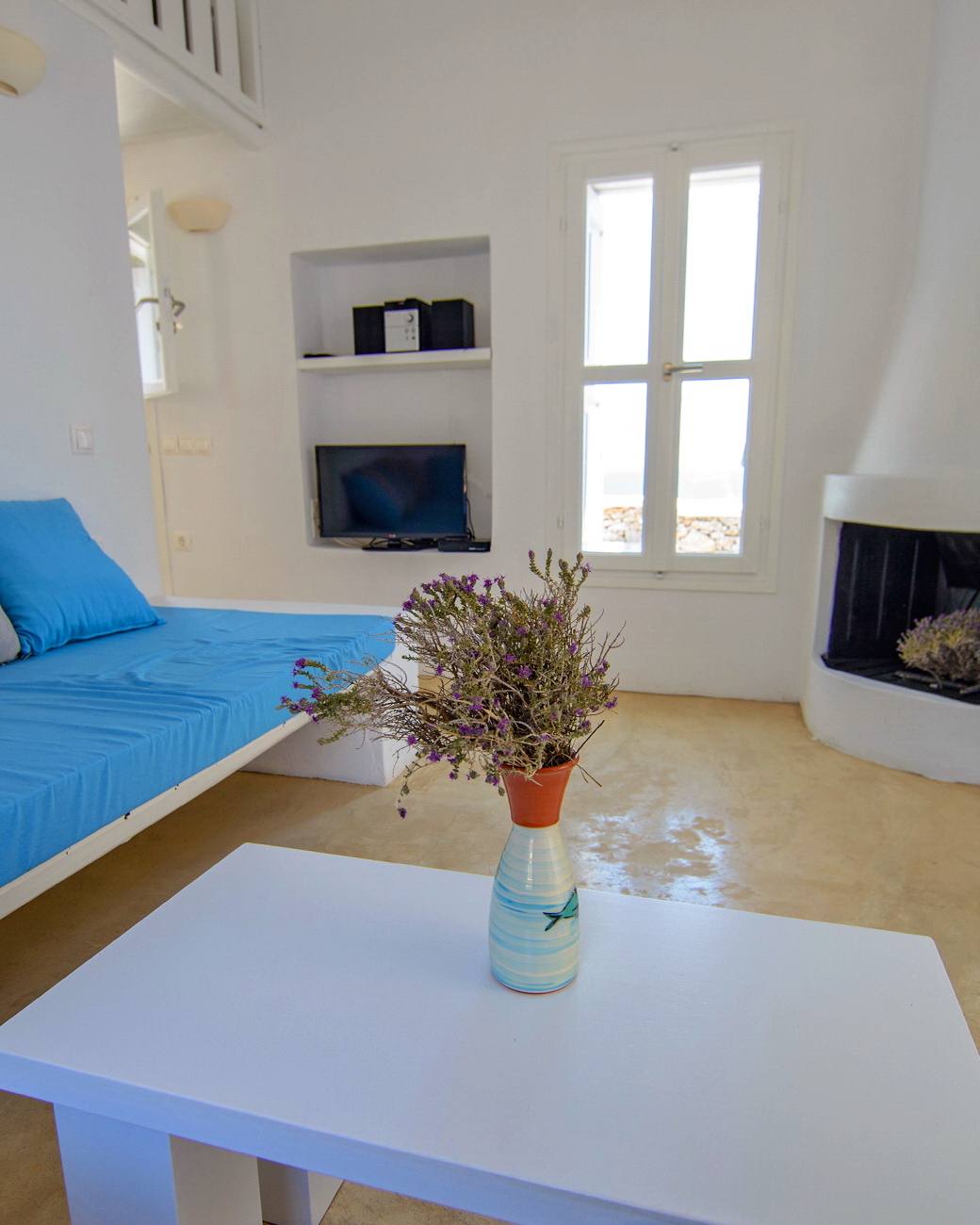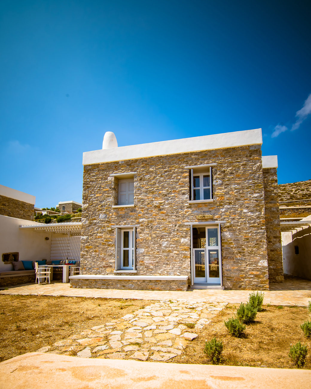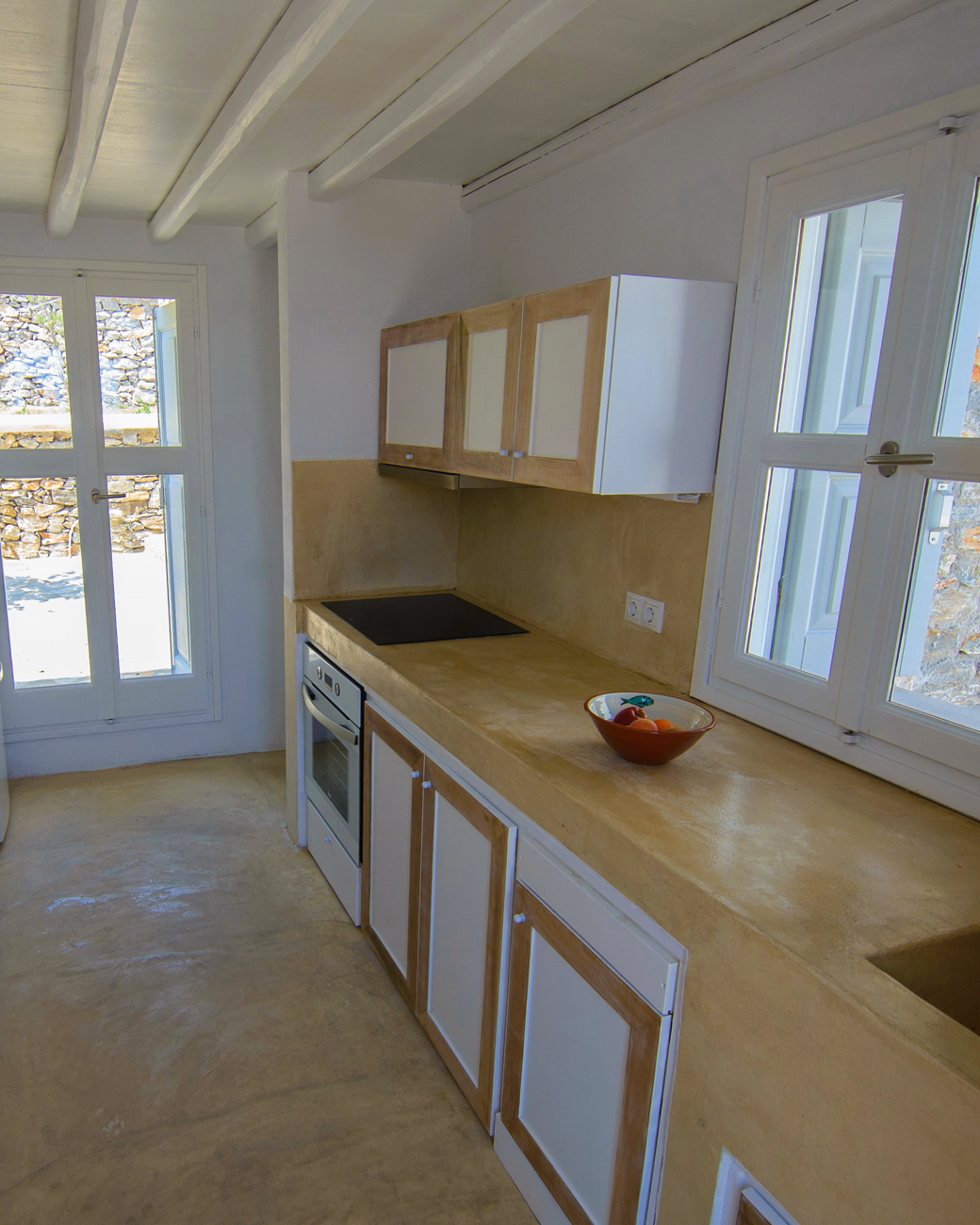 With direct access to the beach and pool, plus year-round comfort through geothermal cooling and air conditioning, it offers a serene and authentic Cycladic escape.